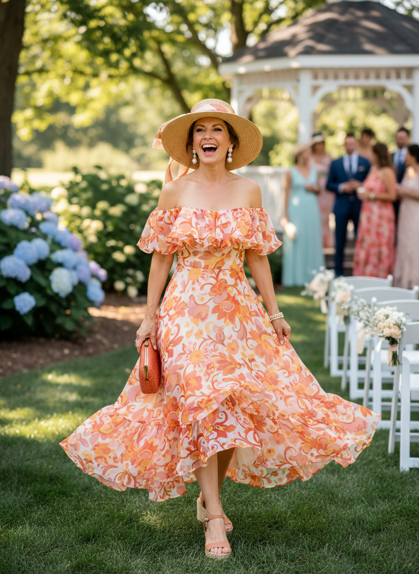 This dress style thrives at brunch celebrations, garden parties, and daytime weddings.