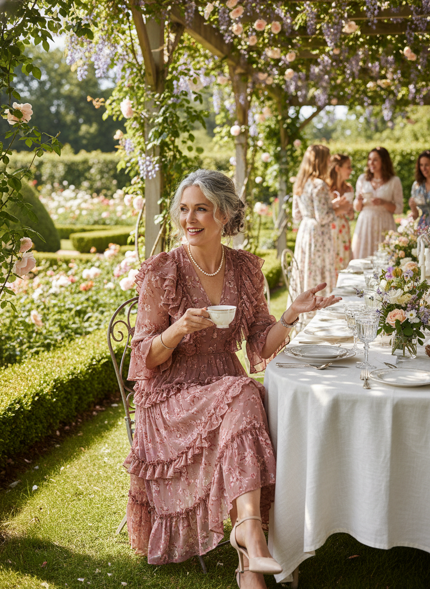 A ruffle-trim romantic midi dress adds movement, femininity, and a joyful energy that makes you feel genuinely celebratory.