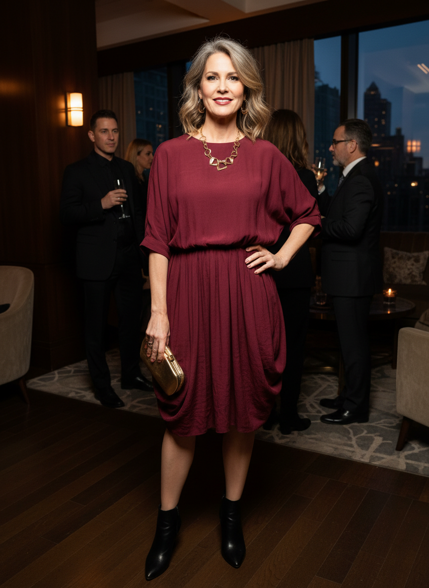 For women over 50, the wrap midi length hits a sweet spot between elegant and comfortable.