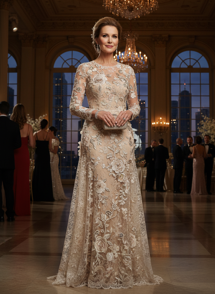 Soft metallics, dusty mauve, and warm gold are especially popular choices right now for women who want something luminous without being loud.
