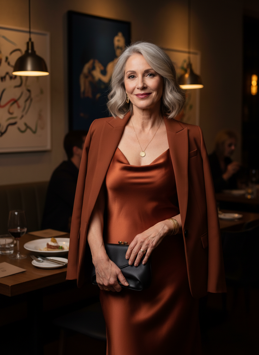 Pairing a silk slip dress with a blazer is one of the smartest styling moves of the decade, and women over 50 are pulling it off brilliantly.