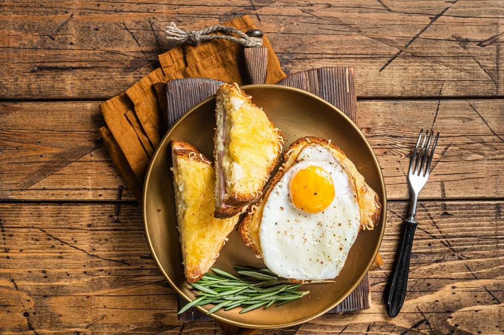 Add a fried egg on top and it becomes the Croque Madame — named playfully because the egg resembles a hat.