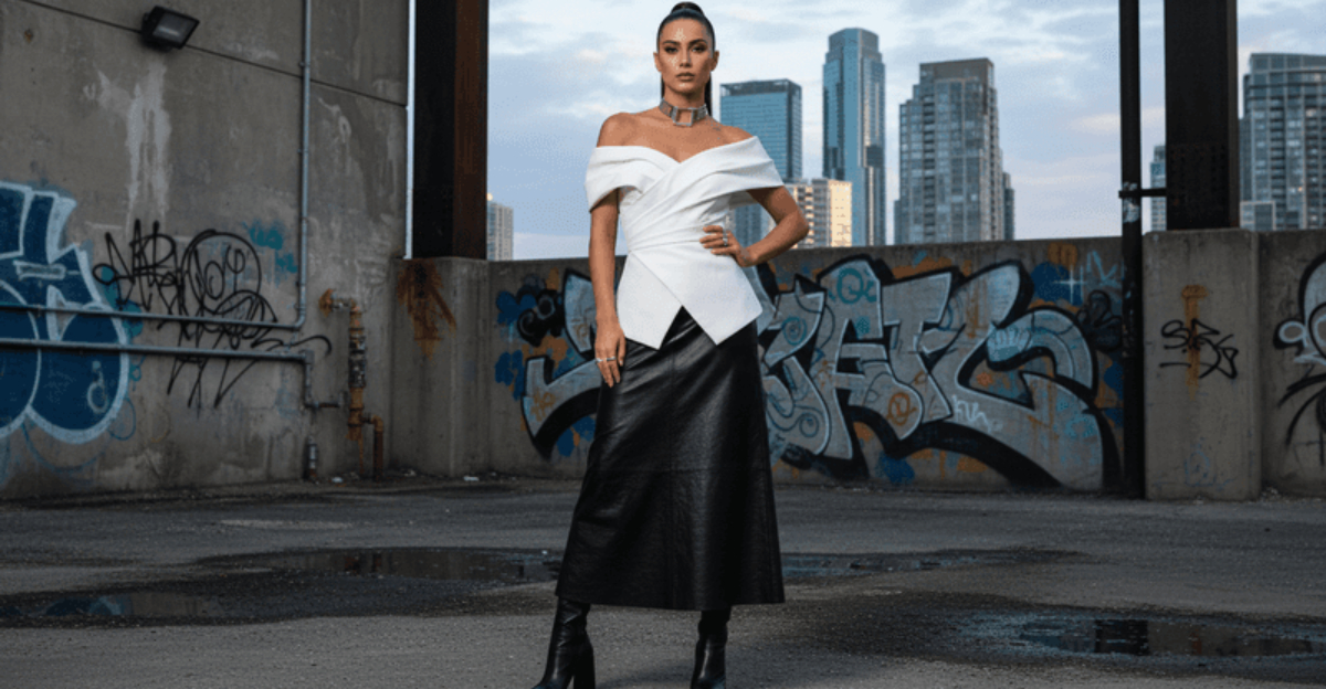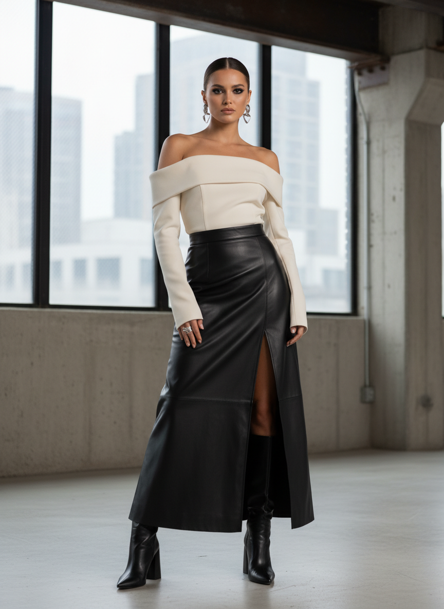 A leather maxi skirt with a fluid, sweeping silhouette instantly commands attention and signals serious style confidence.