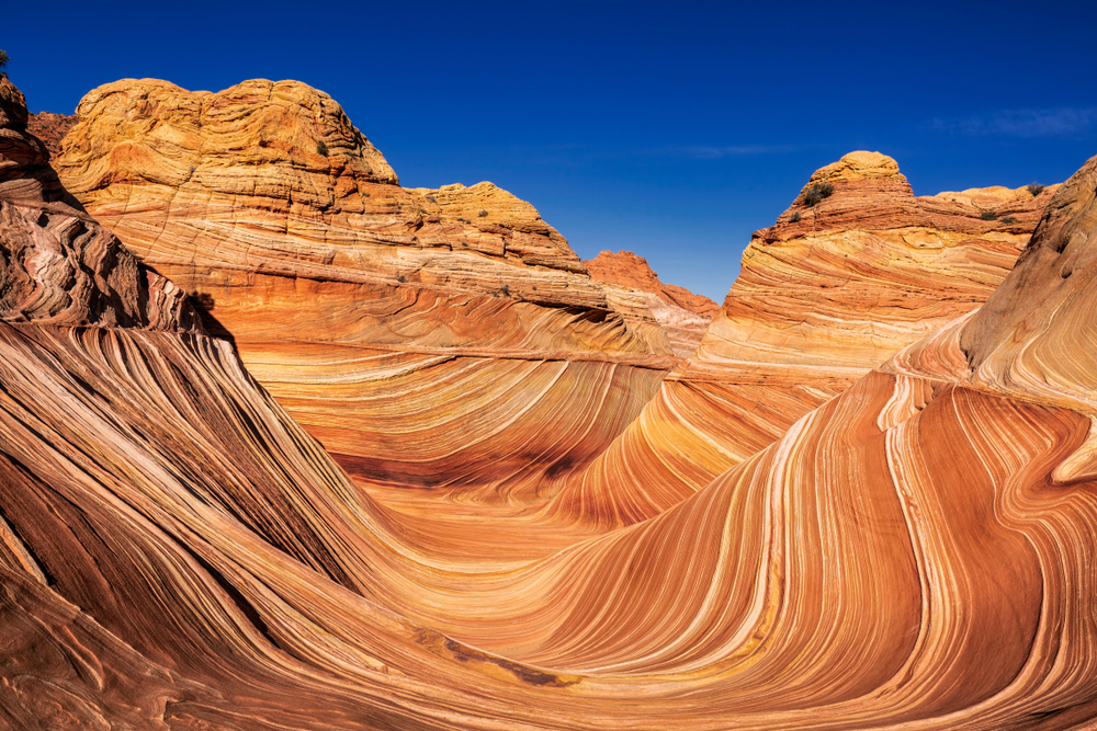 The striped sandstone creates mind-bending optical illusions in shades of red, orange, and yellow. Photographers travel from across the globe hoping to capture this geological masterpiece. You’ll need to hike about three miles across trackless desert to reach it.