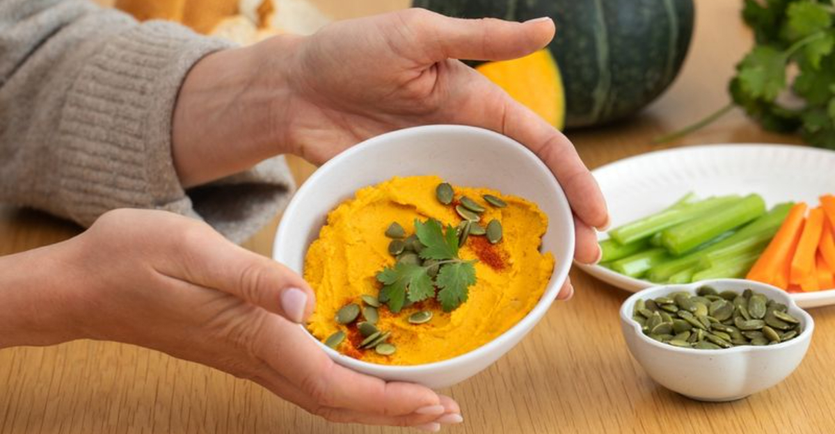 Surprise your taste buds with pumpkin hummus – an unexpected twist on the Middle Eastern classic! The natural sweetness of pumpkin beautifully balances the tangy lemon and savory tahini.