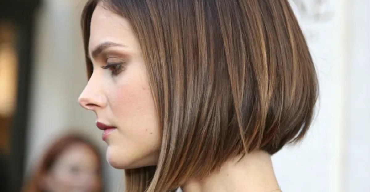 Tapering means your stylist gradually thins out the ends, creating a softer, more pointed finish rather than a harsh horizontal line. When the front pieces are even just half an inch longer than the back, they angle forward to frame your jaw and create that coveted V-shape.