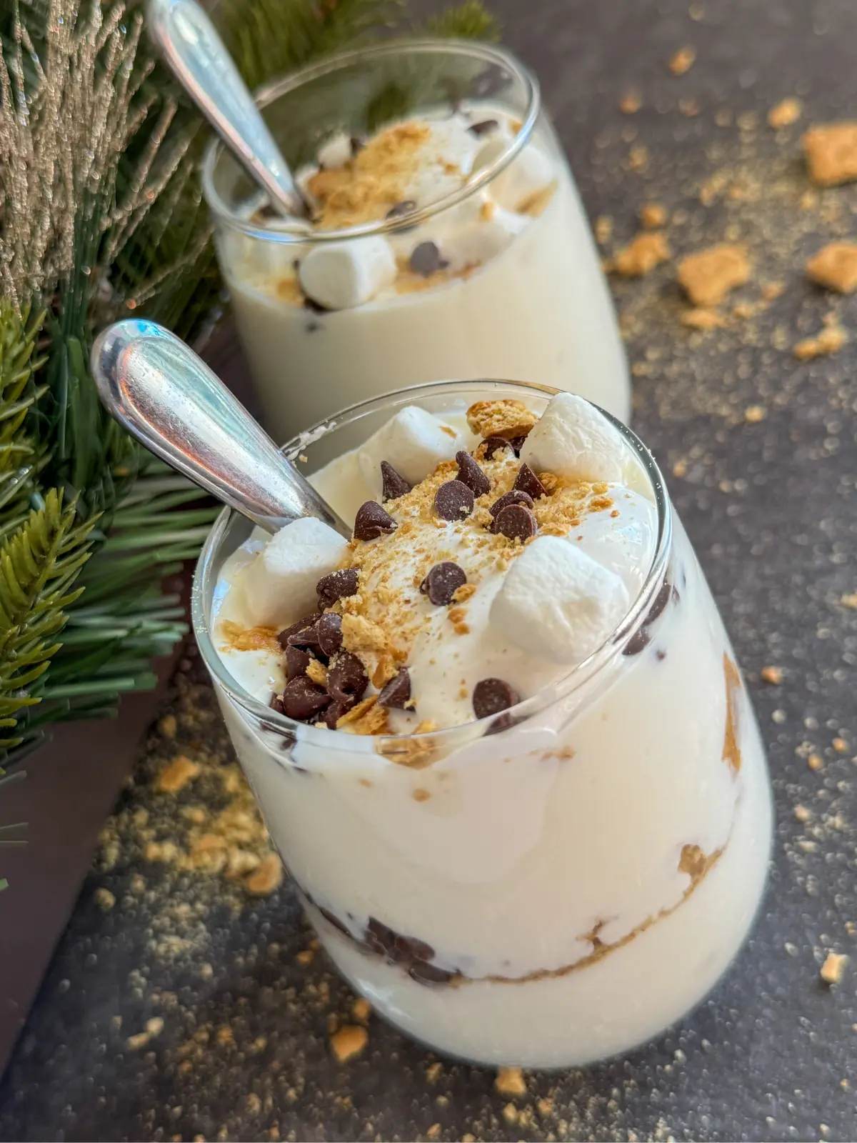 Layer it with crushed graham crackers and top with a toasted marshmallow for that authentic s’mores experience without needing a fire pit.