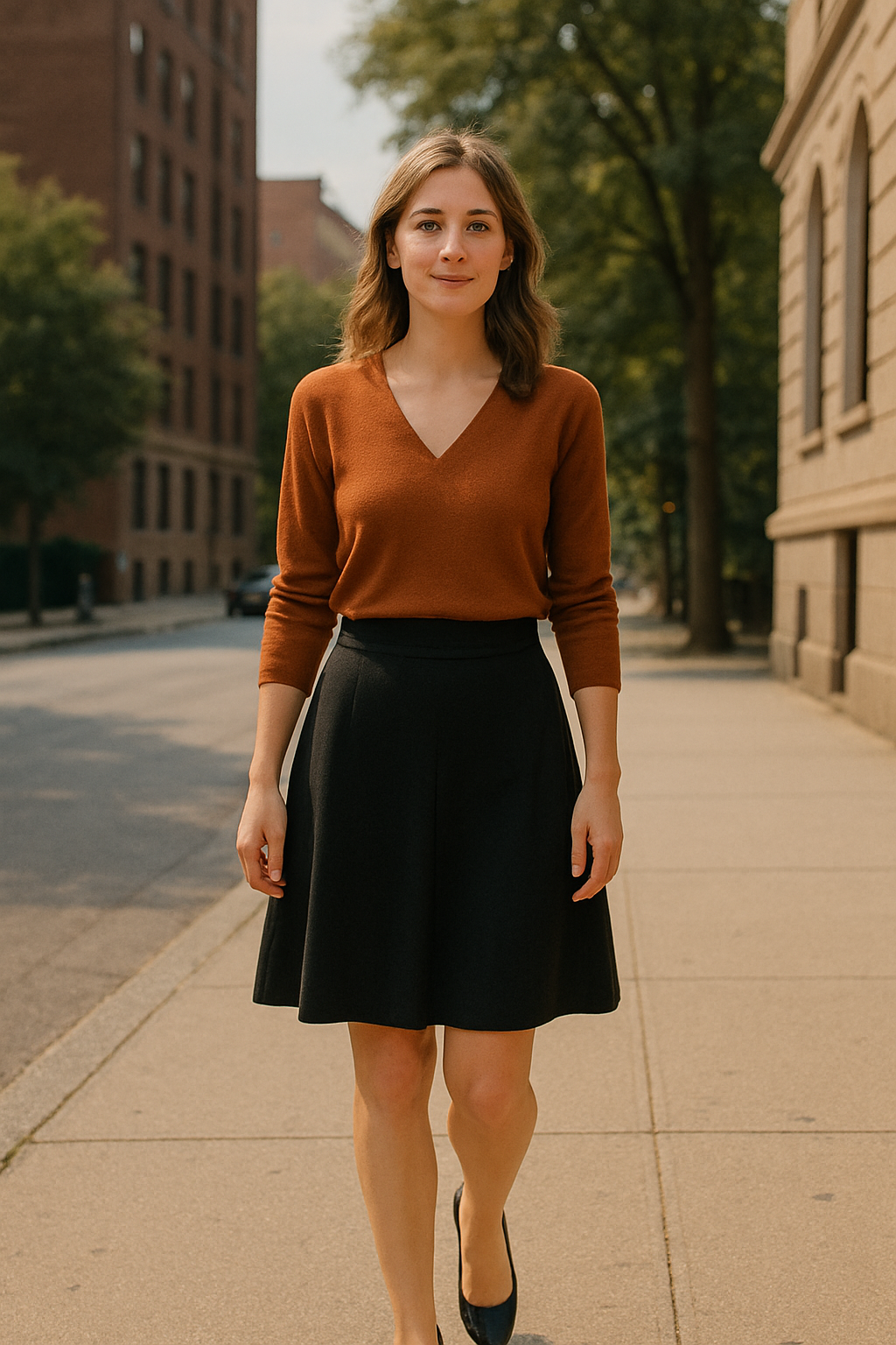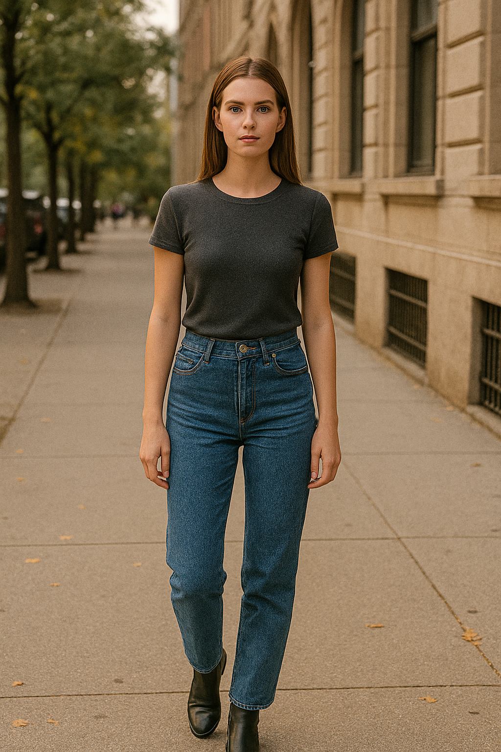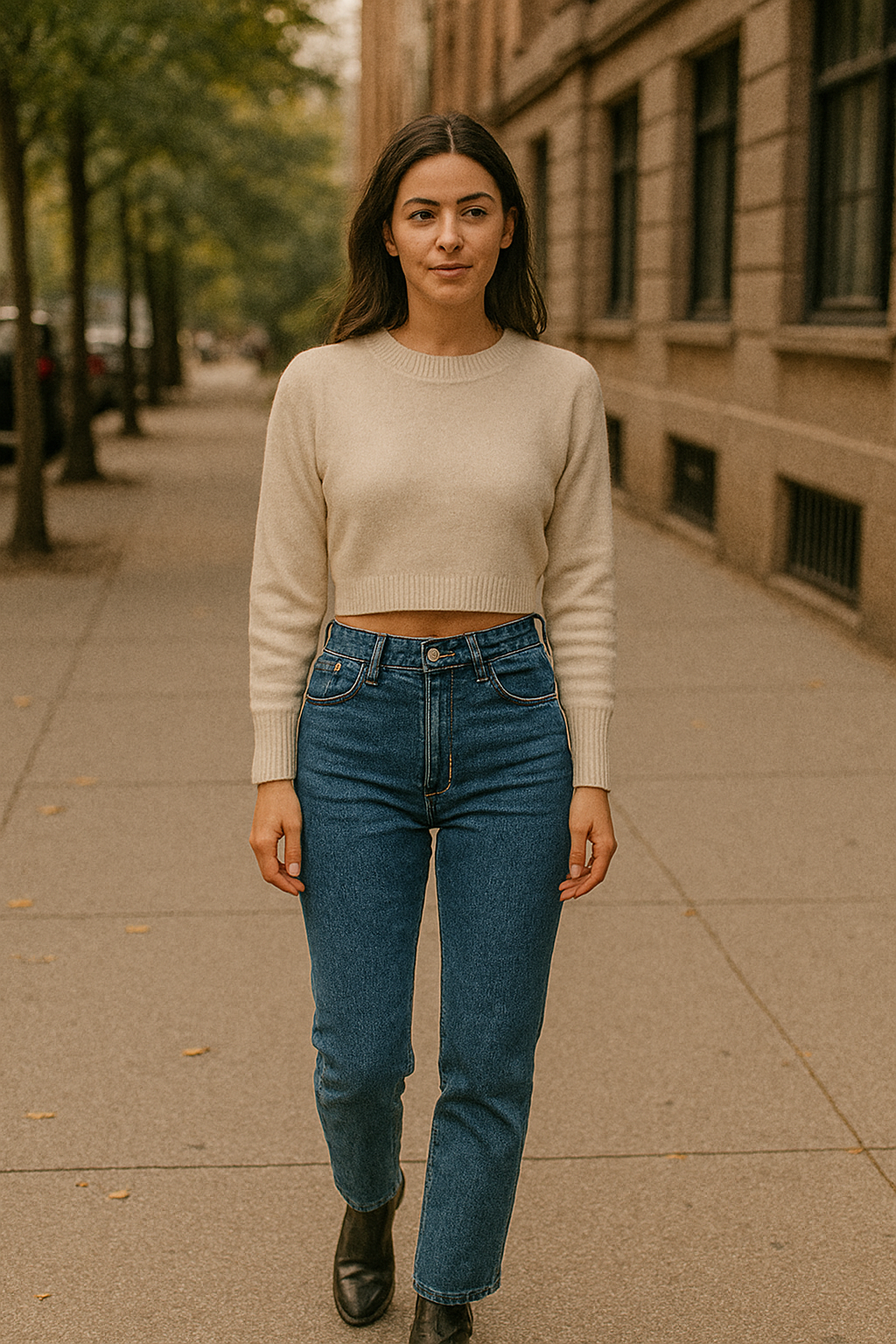 Picture a fitted sweater tucked into jeans that hit right at your natural waist—neither piece dominates, creating harmony.