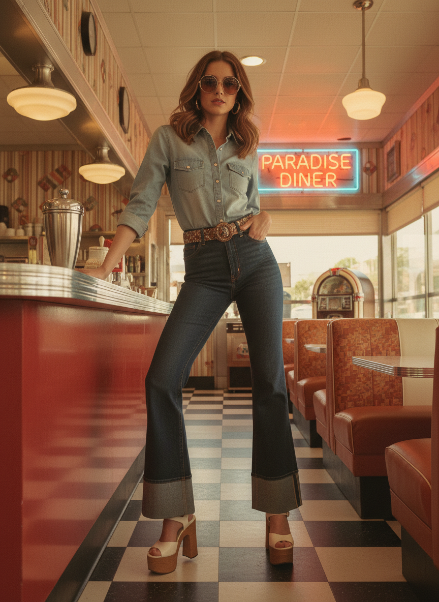 This combination channels retro 1970s energy while feeling completely modern and wearable today.