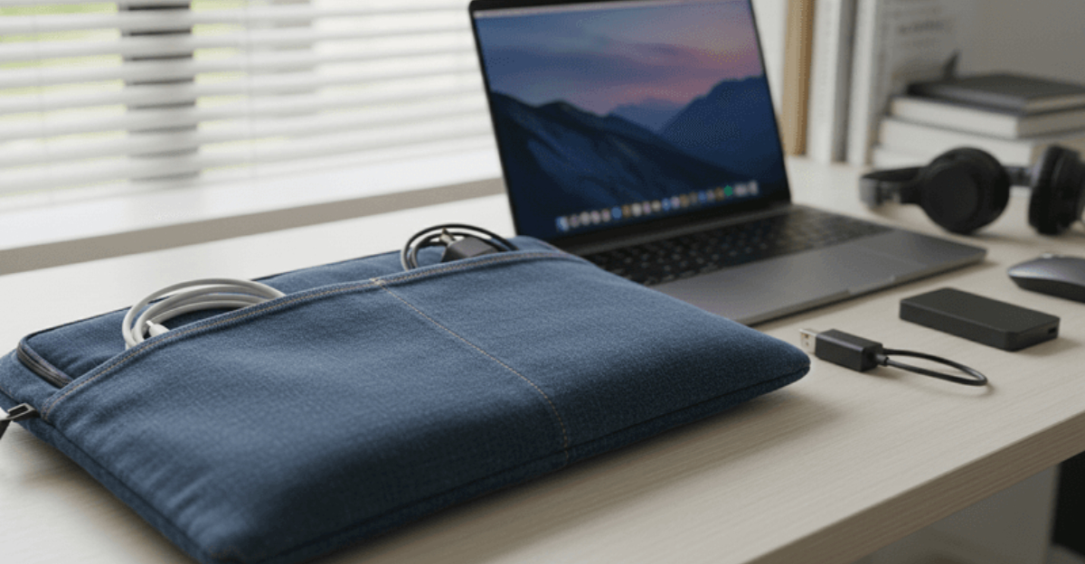 The existing pocket becomes the perfect spot for charging cables, earbuds, or a wireless mouse.