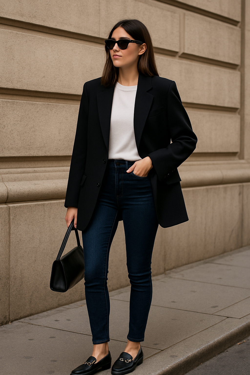 Proportions are everything when you want skinny jeans to look modern rather than dated. Throwing on a structured or oversized blazer transforms your entire outfit instantly. Add sleek loafers, and you’ve got yourself a polished look that screams fashion editor meets Parisian chic.