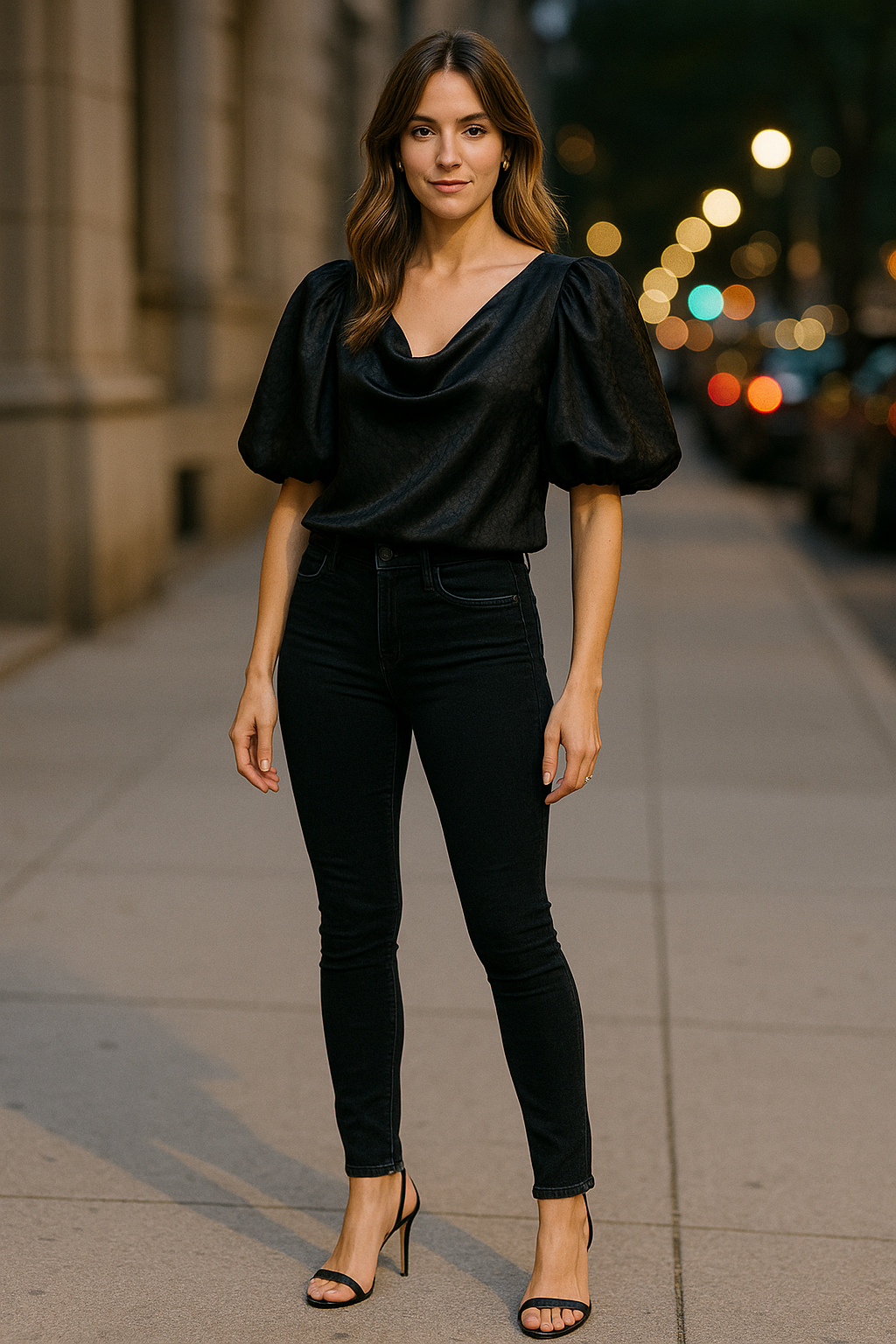 Skinny jeans absolutely belong in your night-out wardrobe. Stylists are proving this by pairing them with dramatic, eye-catching tops that demand attention. Puff sleeves, metallic fabrics, and silk camis all work beautifully here.