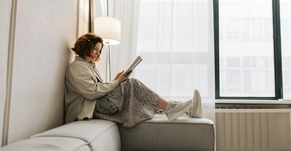 Choose a comfortable chair—something you can curl up in with your feet tucked under you. Add a soft blanket within arm’s reach and a small side table for your tea, book, or phone. Good lighting is essential, so include a reading lamp with adjustable brightness.