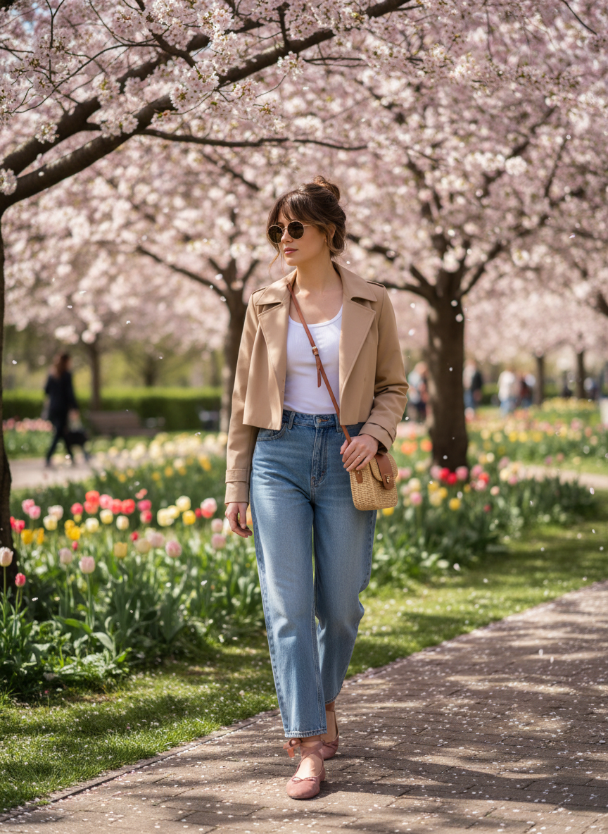 Baggy denim has officially taken over the fashion world, and pairing it with a cropped trench coat is one of the smartest spring moves you can make.
