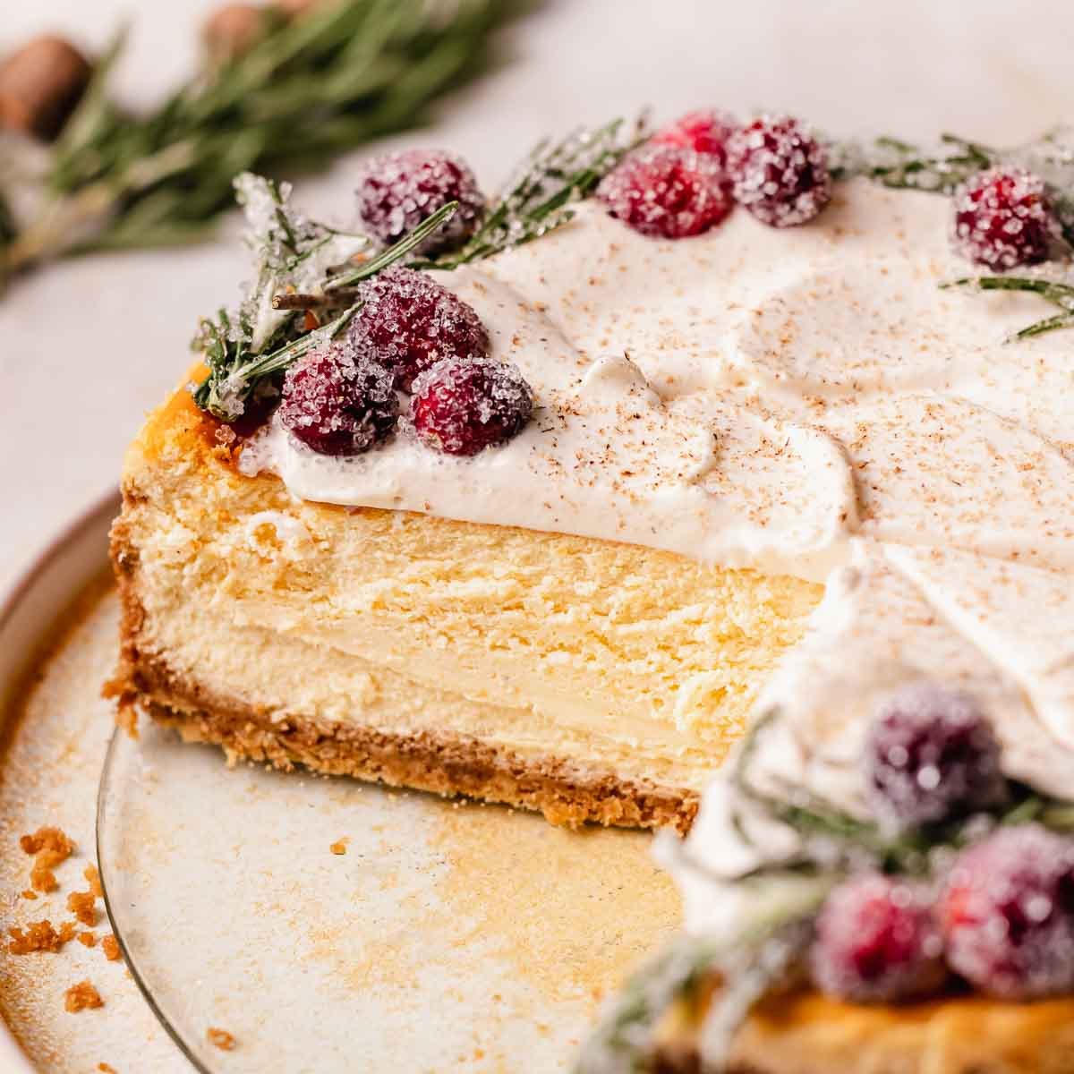 Cream cheese blended with eggnog, nutmeg, and rum extract creates unbelievably smooth filling that tastes exactly like the drink in solid form.