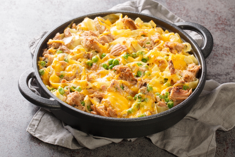 Perhaps no dish screams Boomer comfort food louder than tuna casserole, that bubbling mixture of canned tuna, cream soup, noodles, and crushed potato chips.