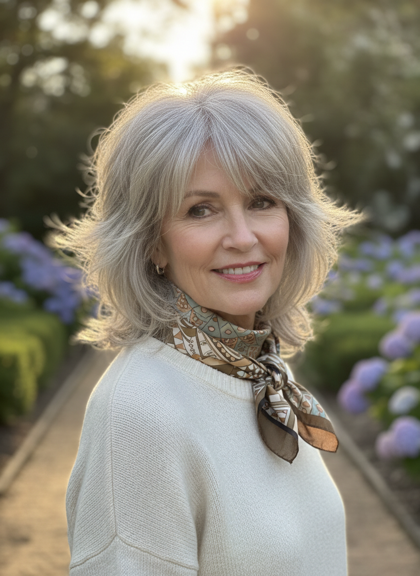 What makes the layered shag so effective for mature hair is its ability to create the illusion of thickness and movement.