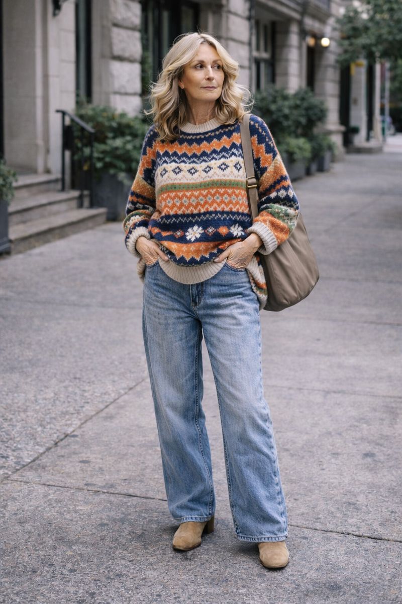 If you love patterned sweaters, pair them with well-fitted, structured jeans that provide a clean foundation.