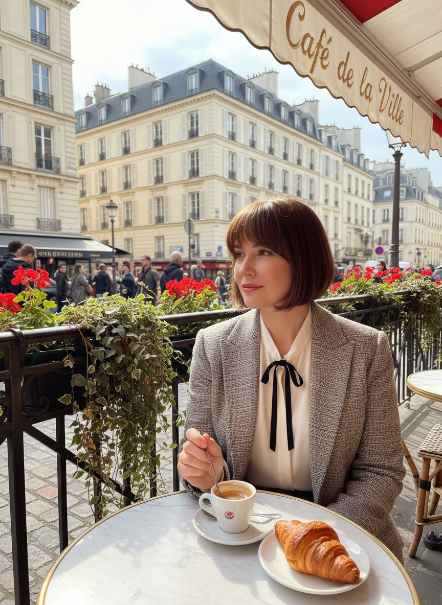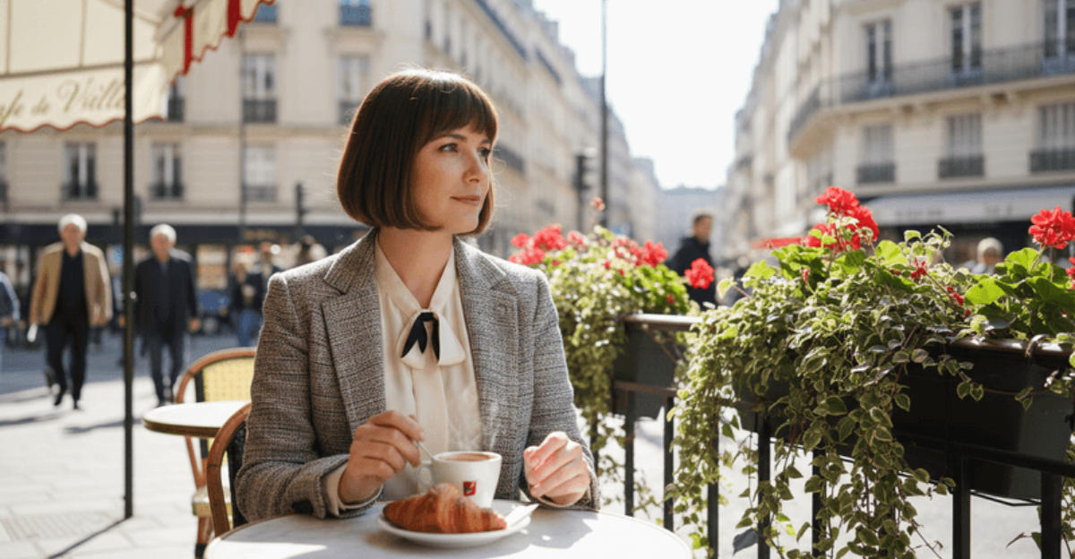 This chin-length cut with subtle side bangs brings Parisian chic to round faces by creating clean lines and sophisticated structure.