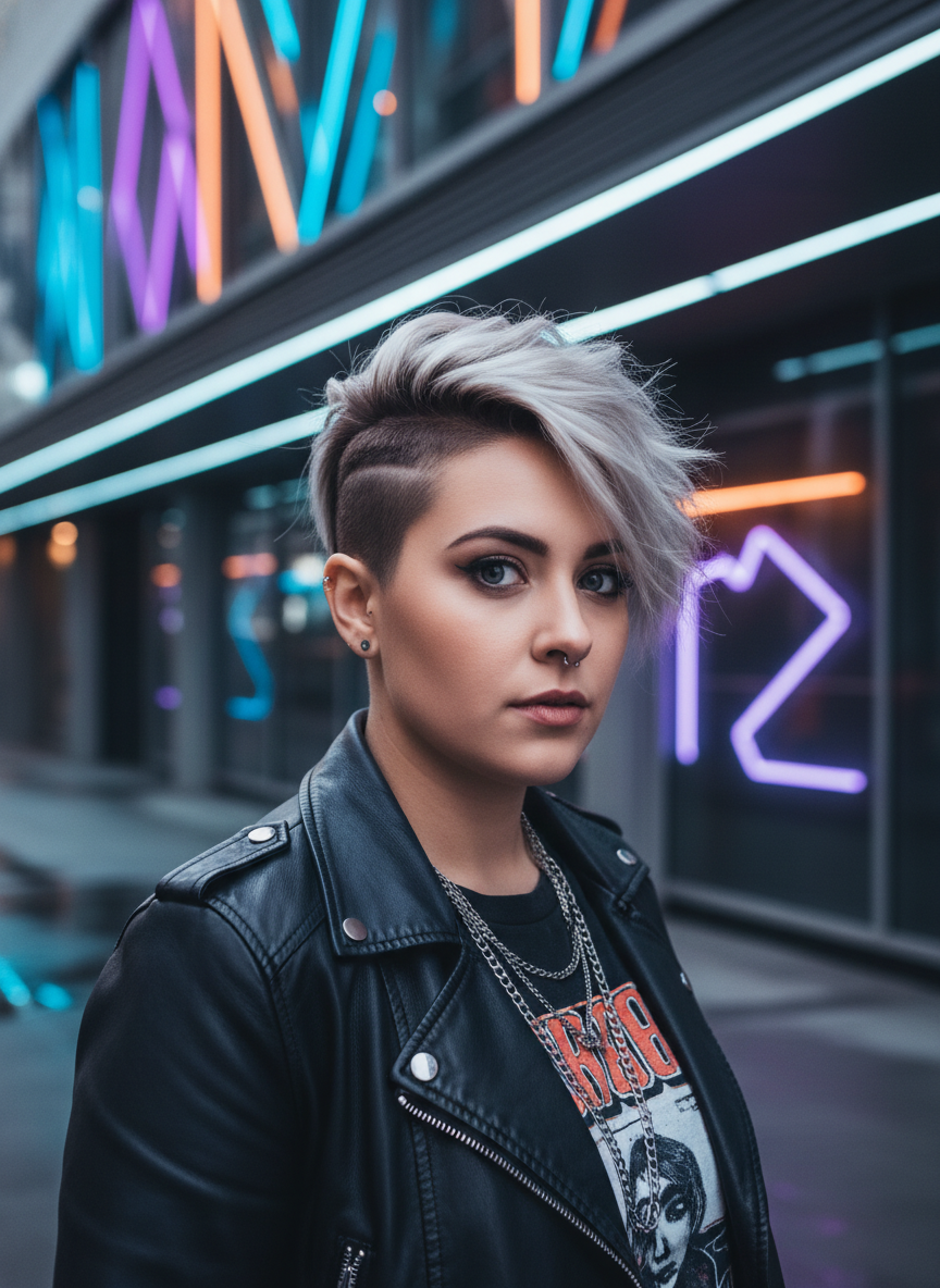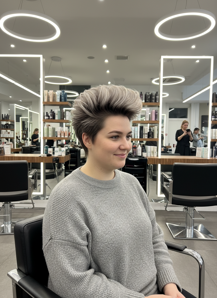 An undercut pixie creates dramatic contrast that’s incredibly flattering for round faces.