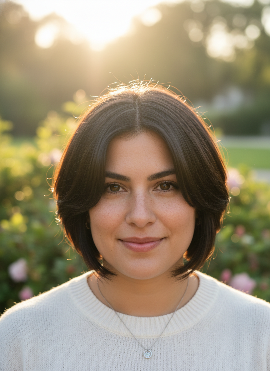Blunt cuts might seem counterintuitive for round faces, but when done with subtle face-framing, they create stunning structure.