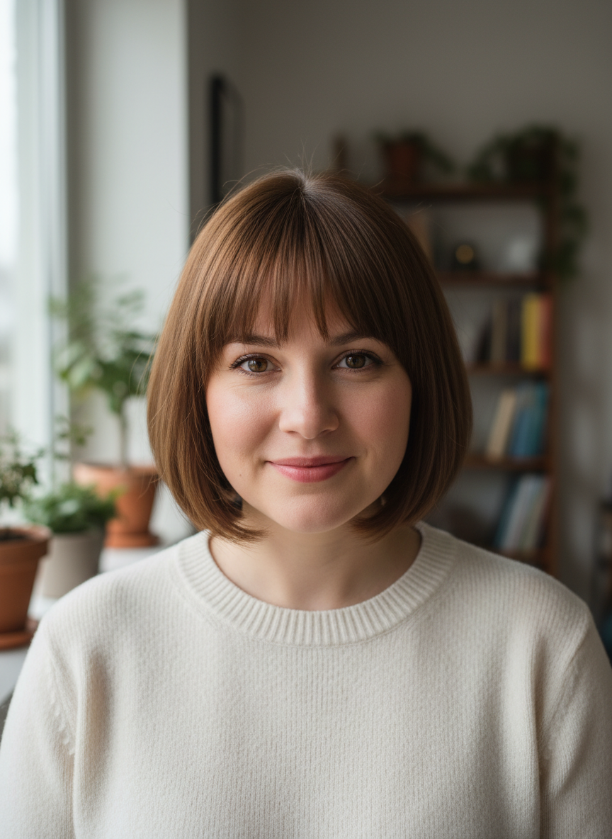 The bluntness gives you that editorial, fashion-forward vibe, while the slight layering around your face prevents it from looking too harsh or boxy.