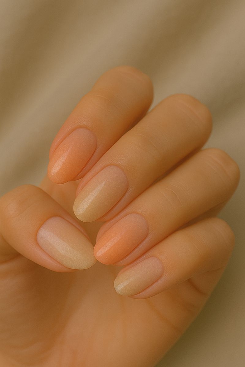 Delicate peach tones blend seamlessly into champagne beige, creating a gradient as smooth as blended fruit puree.