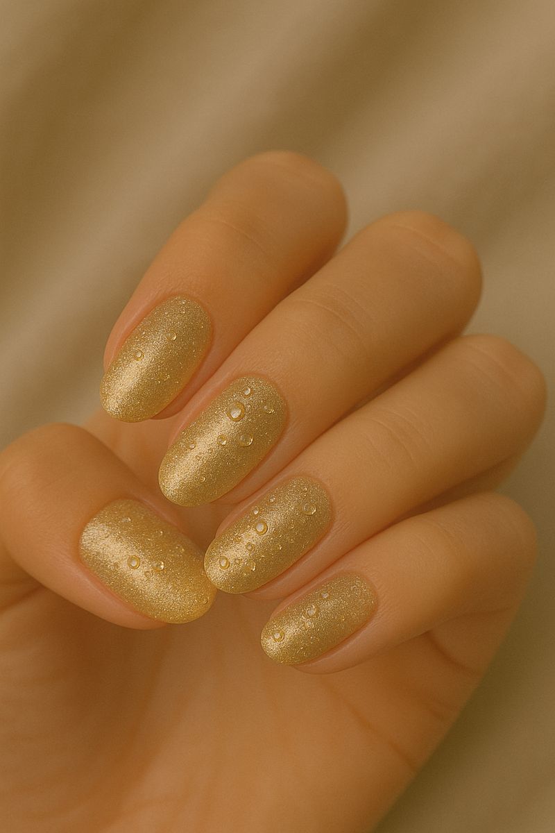 Champagne gold polish serves as your luxurious base, that perfect metallic neutral that flatters absolutely everyone who tries it.