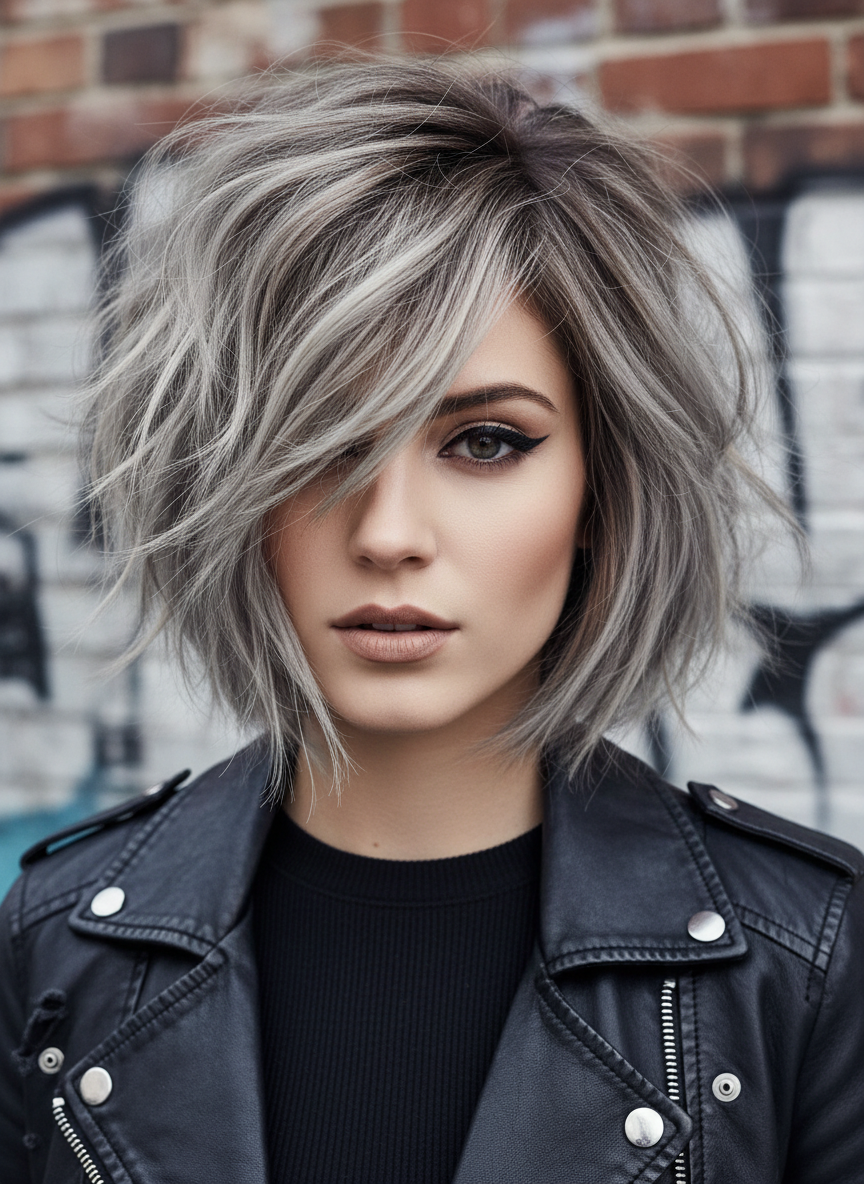 The uneven lengths make your hair look intentionally dramatic and fashion-forward rather than simply thin.