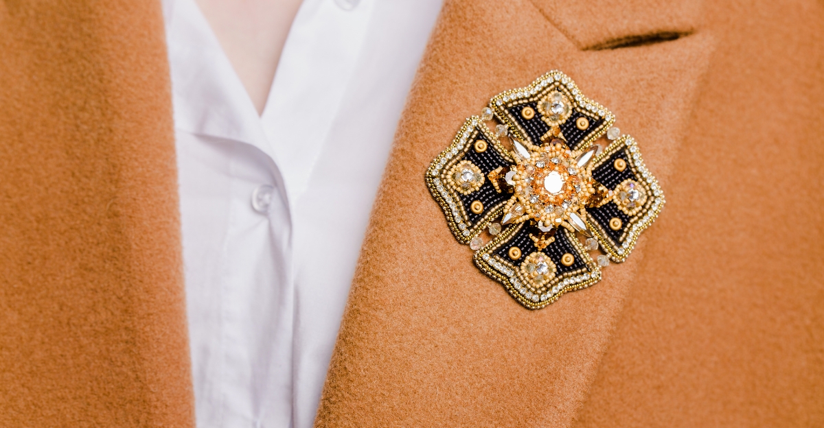 Wearing a single statement brooch on a plain sweater instantly elevates the whole outfit.