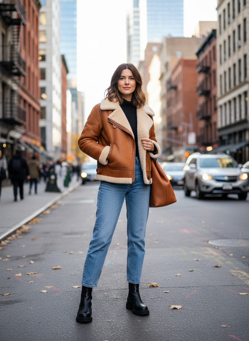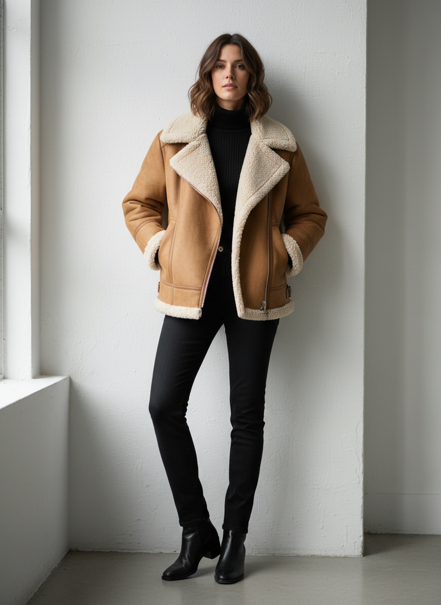 Whether you’re heading to brunch, the office, or a weekend adventure, a shearling jacket can be your go-to piece that pulls everything together effortlessly.