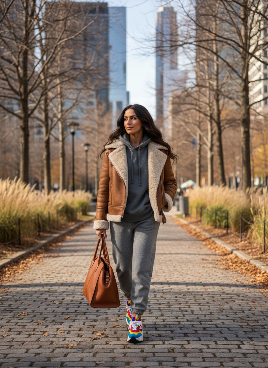 Throwing a shearling jacket over your favorite hoodie and joggers instantly transforms a lazy-day outfit into something Instagram-worthy.