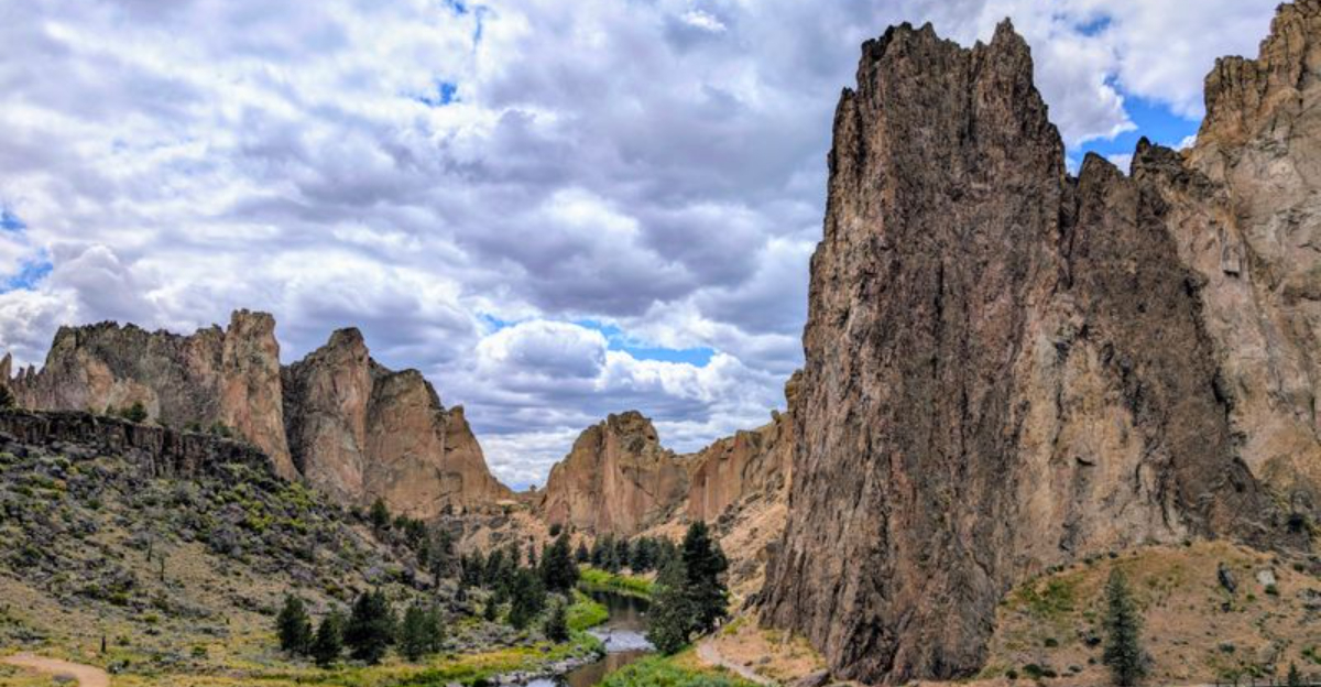With its towering spires and rugged cliffs, Smith Rock State Park offers a dramatic landscape reminiscent of a Martian terrain. These volcanic rock formations rise sharply from the high desert, creating a maze of peaks and crevices.