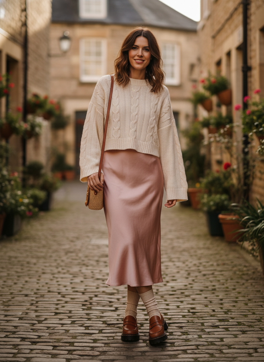 Chunky loafers ground the flowing fabrics, creating balance and making the outfit feel more wearable.