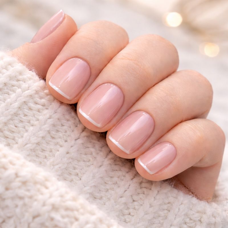 Instead of thick white tips, this updated style features barely-there lines in subtle colors like beige, soft pink, or even metallic shades.