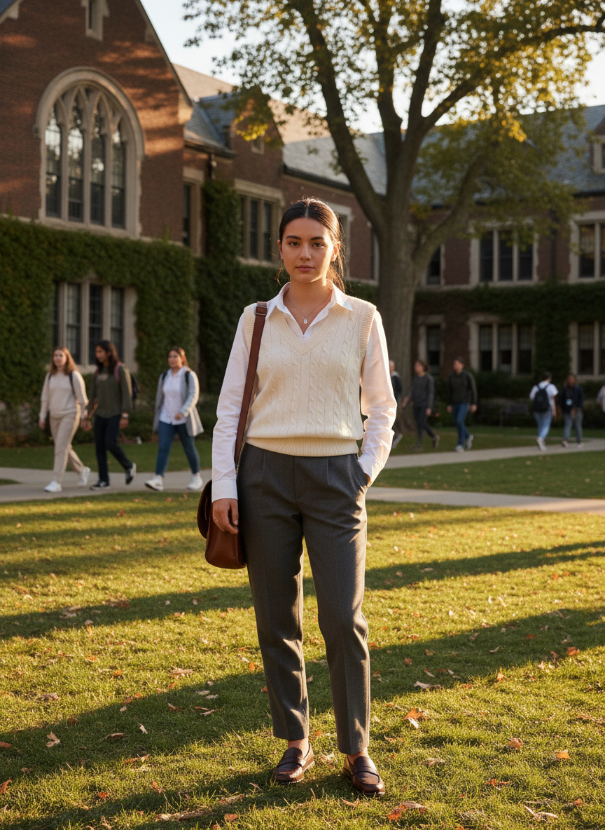A button-up shirt paired with a sweater vest is a classic prep-school look that has made a massive comeback in recent years.