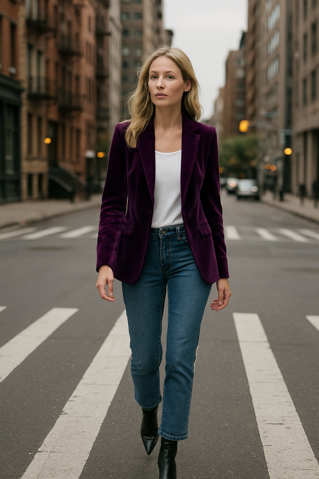 Velvet’s plush softness plays beautifully against smooth silk, structured wool, or edgy leather.
