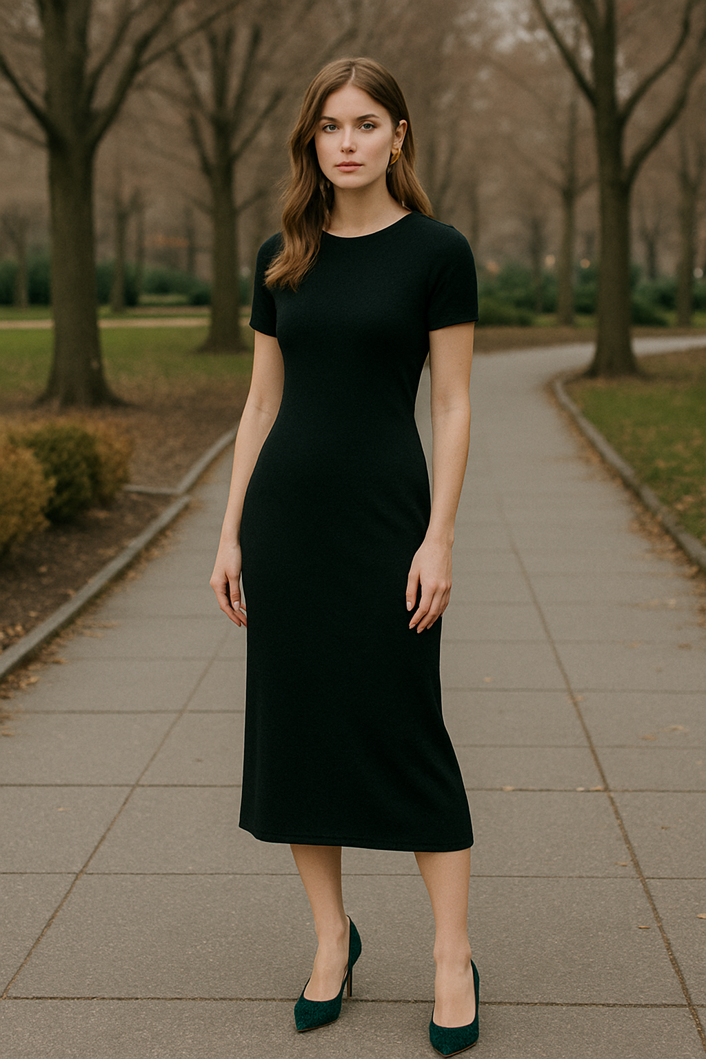 A velvet midi dress hits that sweet spot between fancy and comfortable.