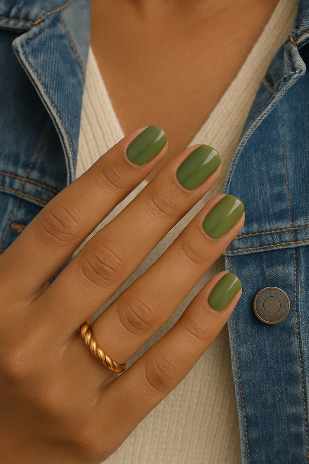 Olive green has emerged as the unexpected hero of neutral shades, bringing a touch of nature to your fingertips year-round.