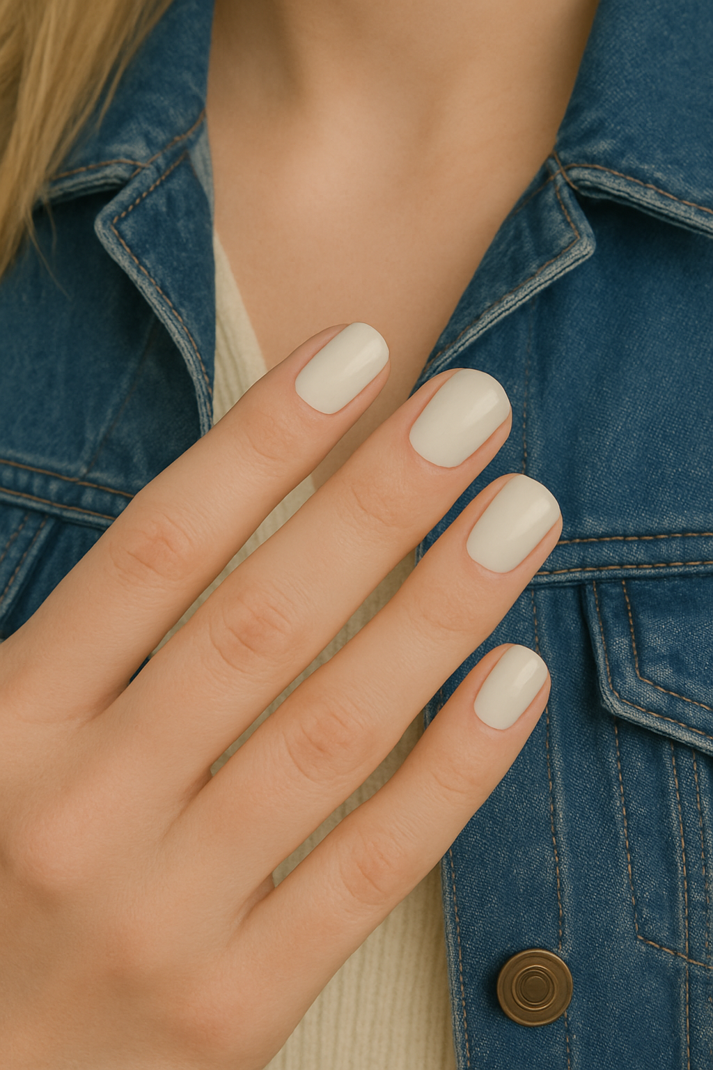 This opaque, creamy white lacks the harshness of bright white polish, instead offering a soft, cloudy appearance that feels gentle and modern.