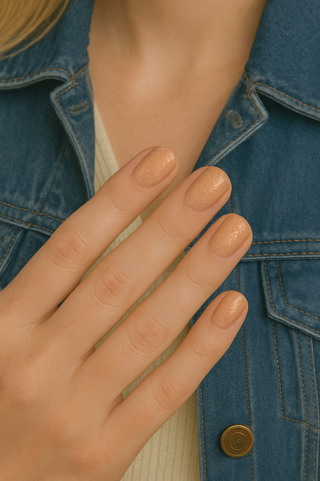 Named after the gorgeous gemstone, sunstone nails combine a soft beige-peach base with delicate gold shimmer that catches the light beautifully.