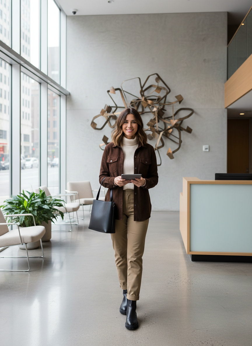 This combination works beautifully for city strolls, coffee dates, or low-key business meetings.