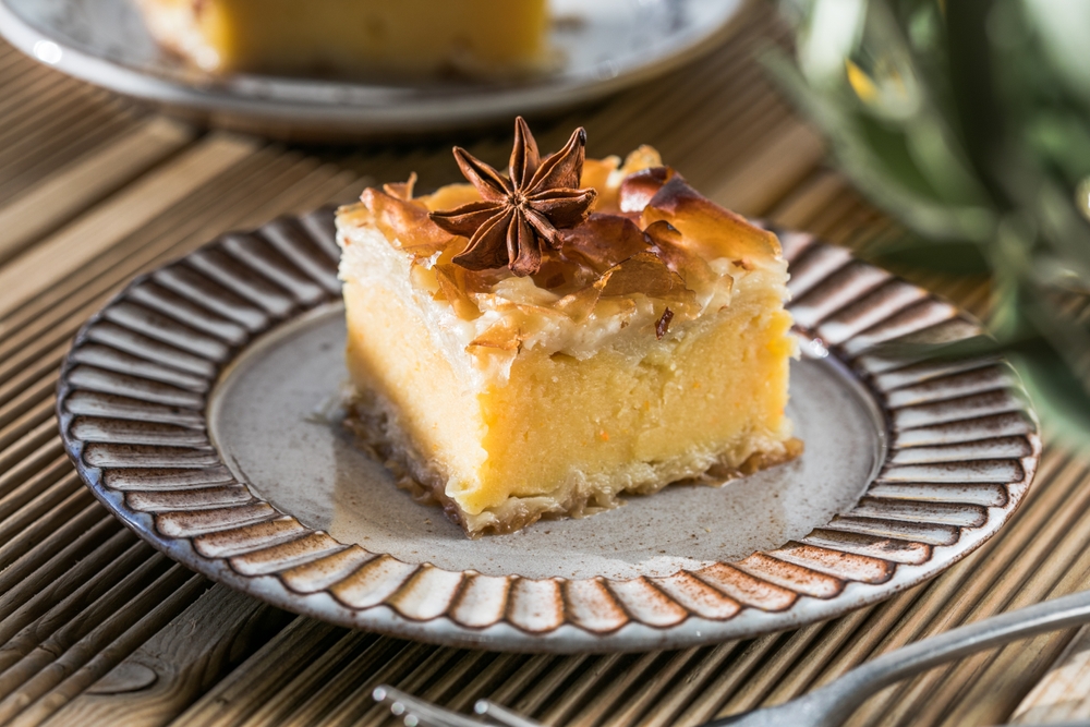 Popular throughout the Middle East and Mediterranean regions, this golden cake uses semolina flour for a unique, slightly grainy texture.