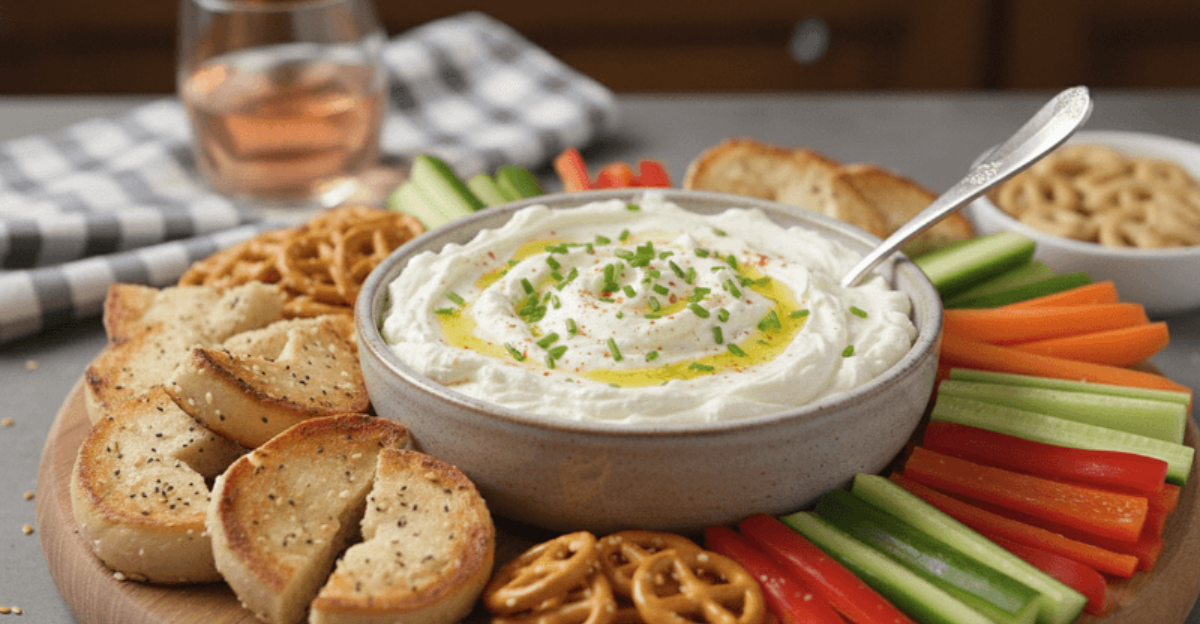 Whipping the base creates an airy, cloud-like texture that spreads effortlessly on crackers, veggies, or crusty bread slices.