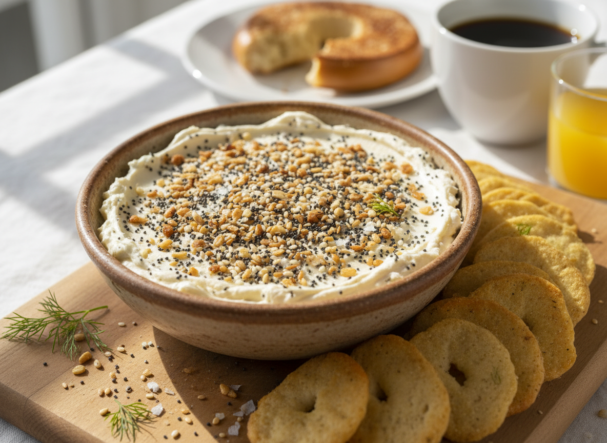 Breakfast meets snack time in this genius dip that captures everything bagel magic in spreadable form.