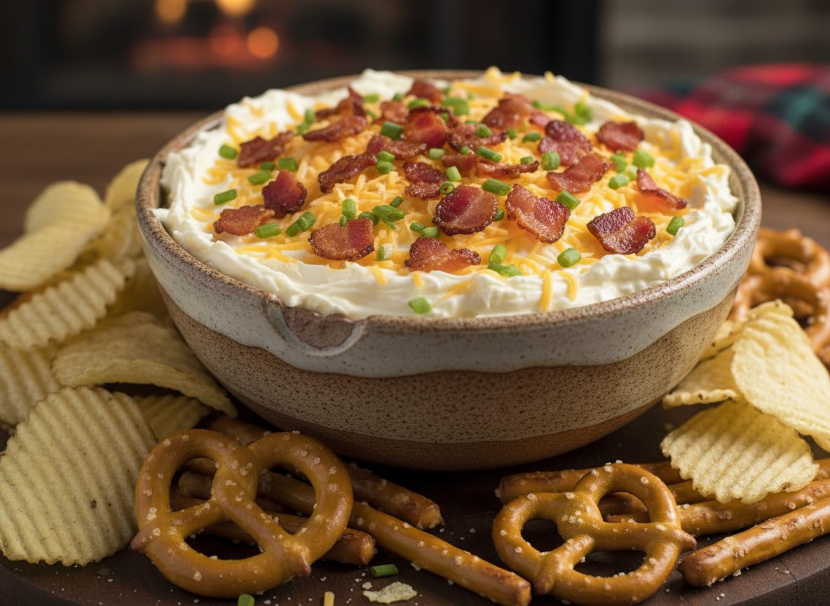 Loaded baked potato flavors translate beautifully into dip form with this crowd-pleasing combination.