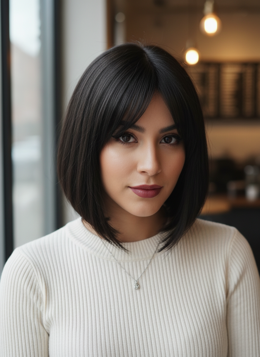 Sharp lines create instant drama, and this bob’s angle makes your jawline look absolutely stunning.