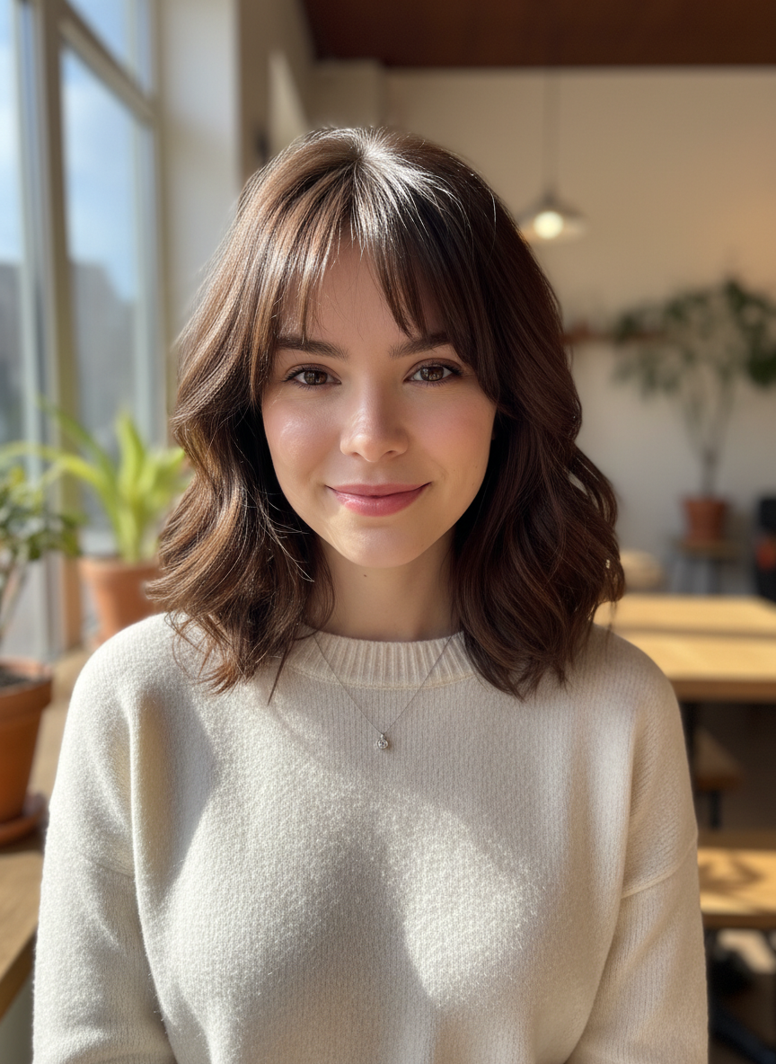 The bangs help break up volume around your forehead without feeling heavy or requiring constant trimming.