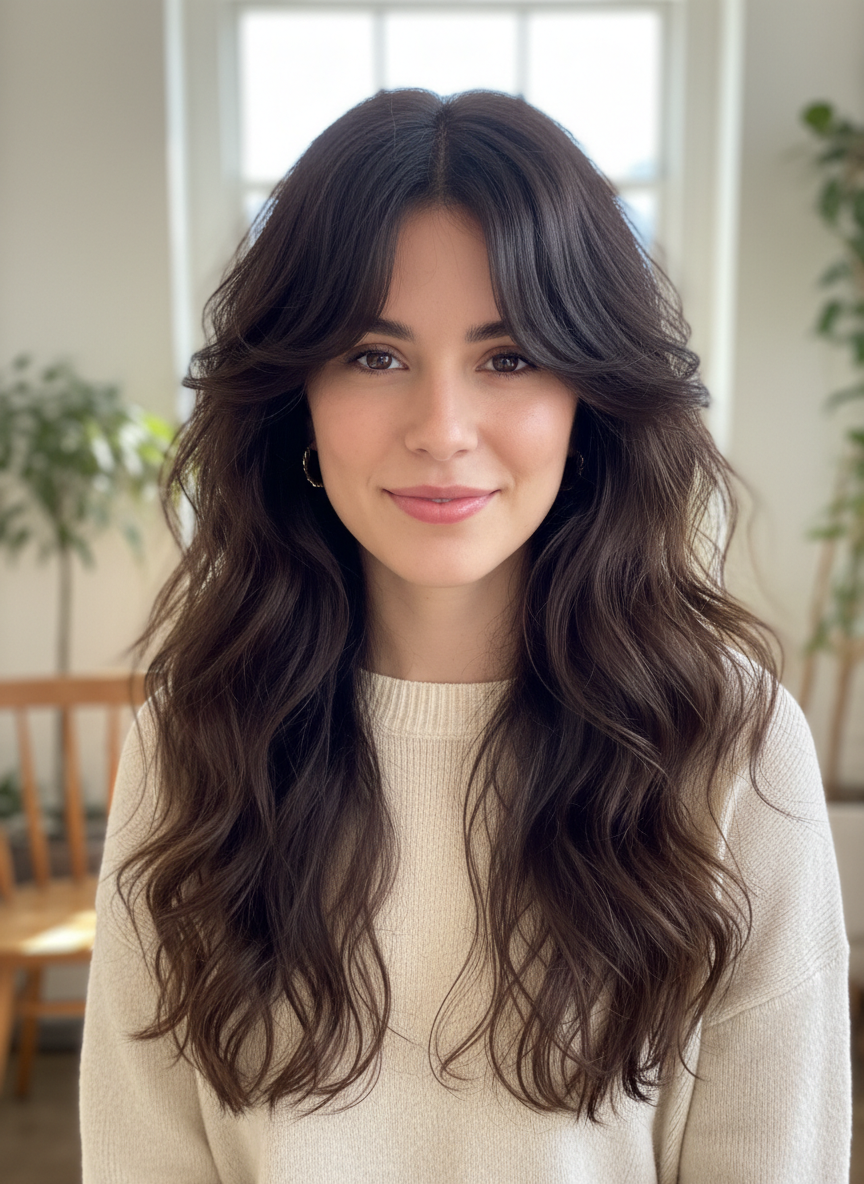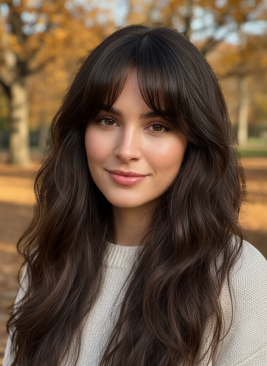 The right bang style makes thick hair feel intentional and styled rather than overwhelming.