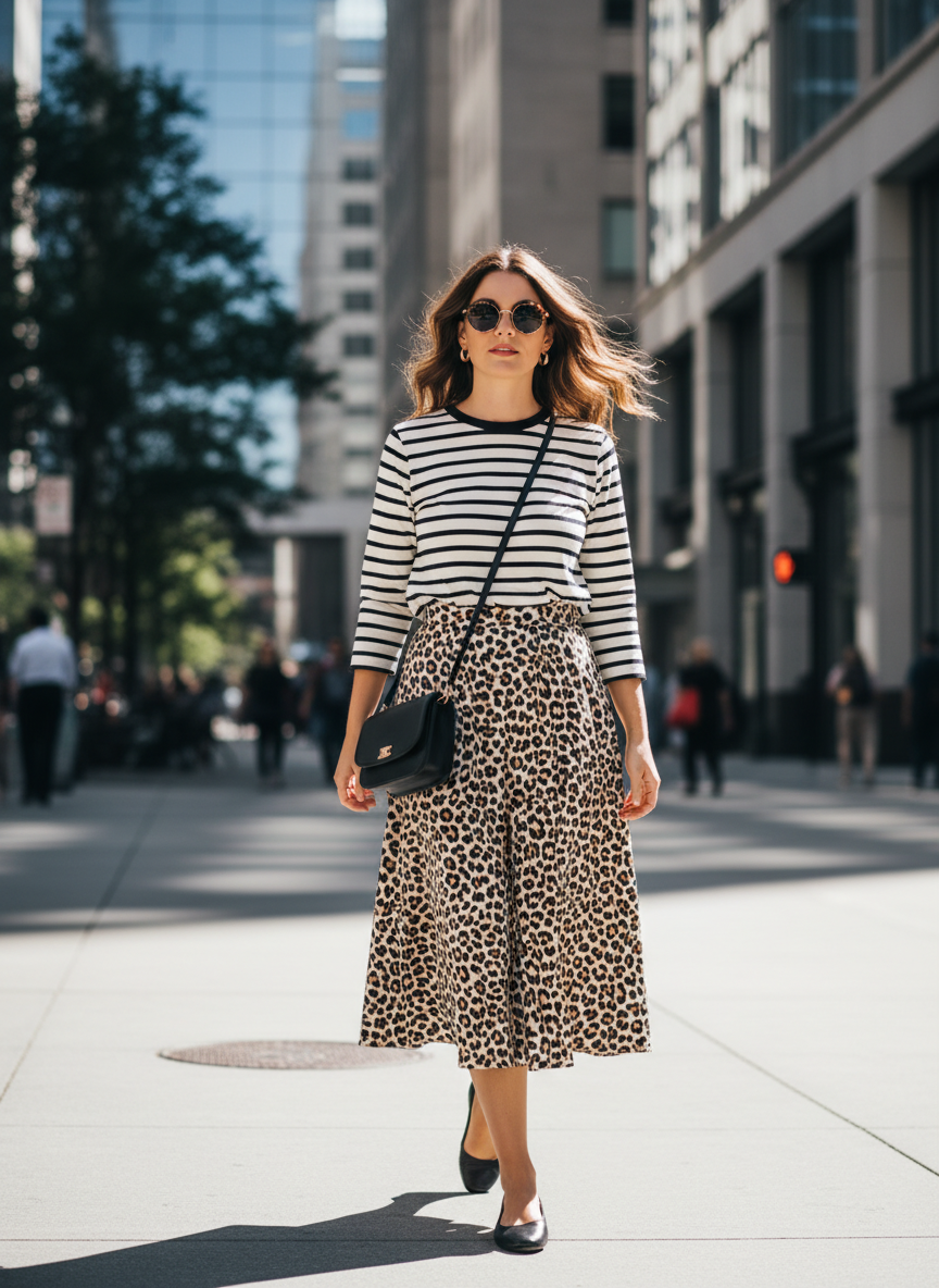 7. Print-Mixing: Leopard + Stripes or Polka Dots (Stylist-Led Trend)